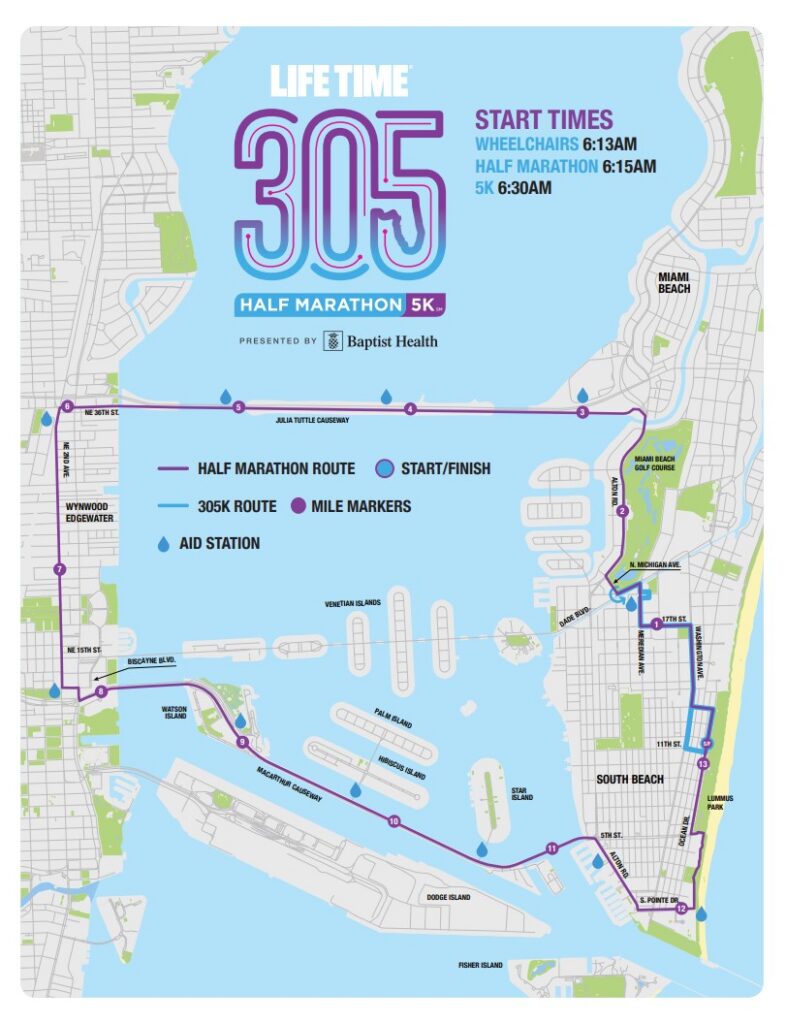 provided by Miami Beach Fire Rescue and Miami Fire Rescue, will be available along the route as well as in a medical facility provided by Baptist Health South Florida located at the finish line. Mobile medical responders will also be stationed throughout the course.